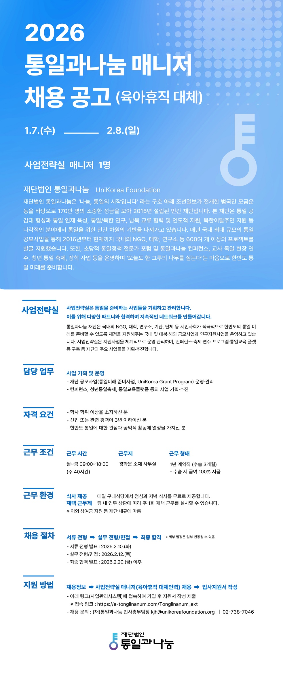 o 접수방법 : https://e-tongilnanum.com/Tongilnanum_ext